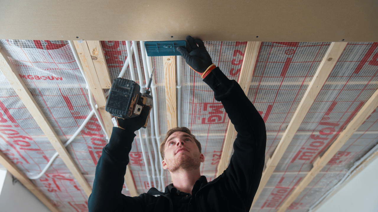 Met onze houders kun je zelfstandig een plafond gipsen, zonder hulp van een tweede persoon